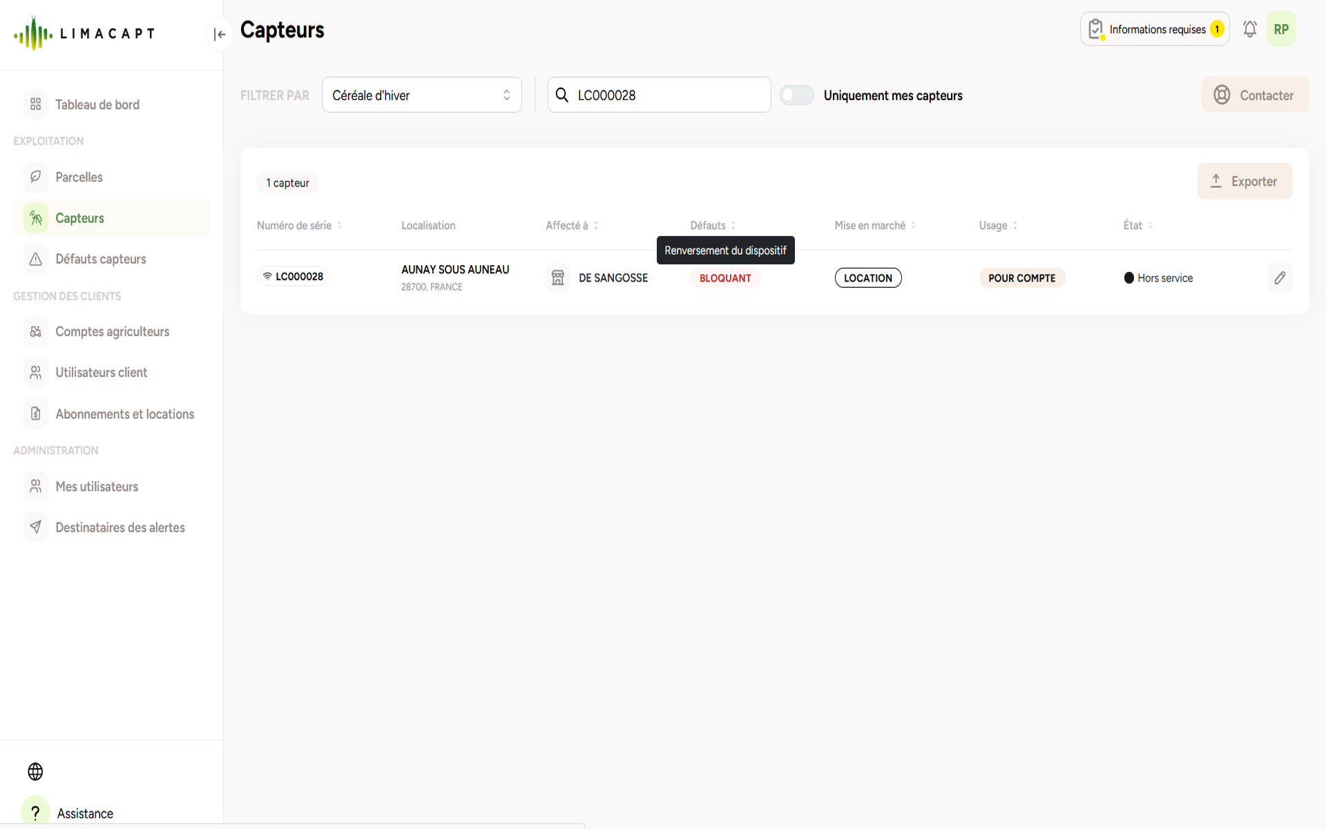 My LIMACAPT is in fault mode (red blinking)