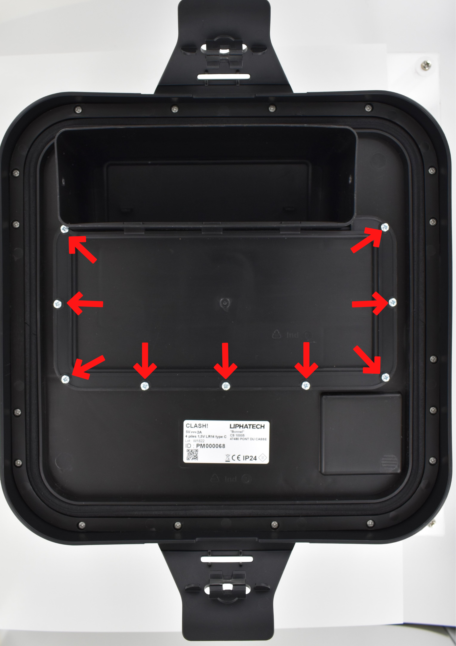 Retournez le couvercle et vérifiez le serrage des vis qui maintiennent la plaque sous le couloir